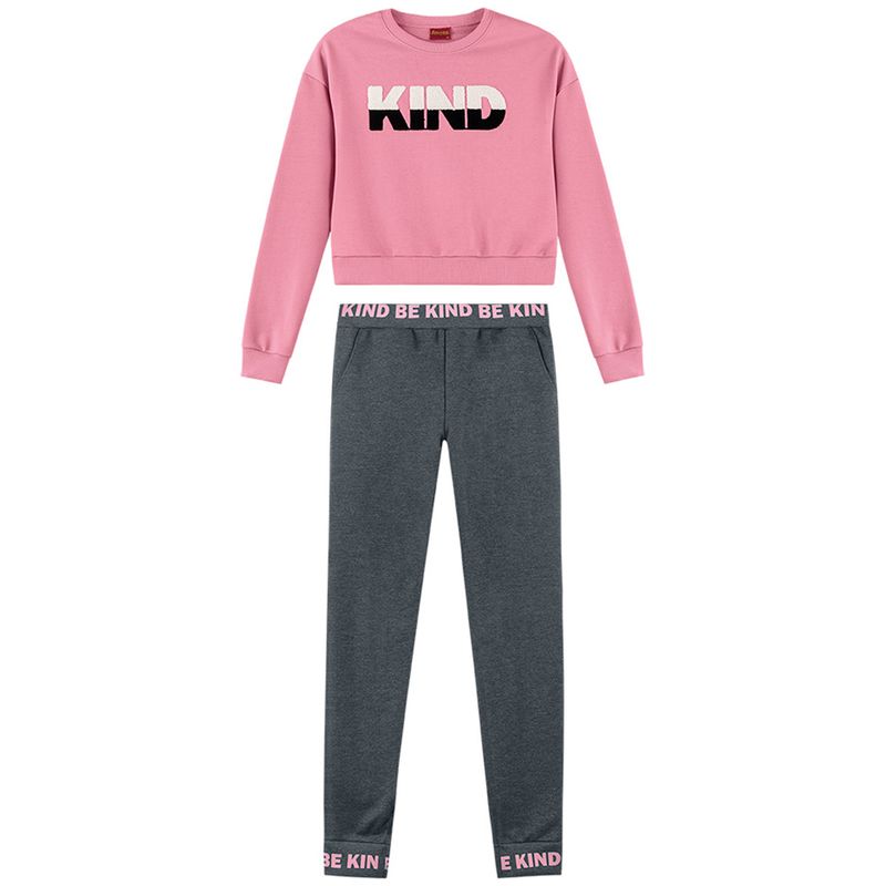 Conjunto Blusão e Calça Feminina Juvenil Amora em Moletom sem Felpa