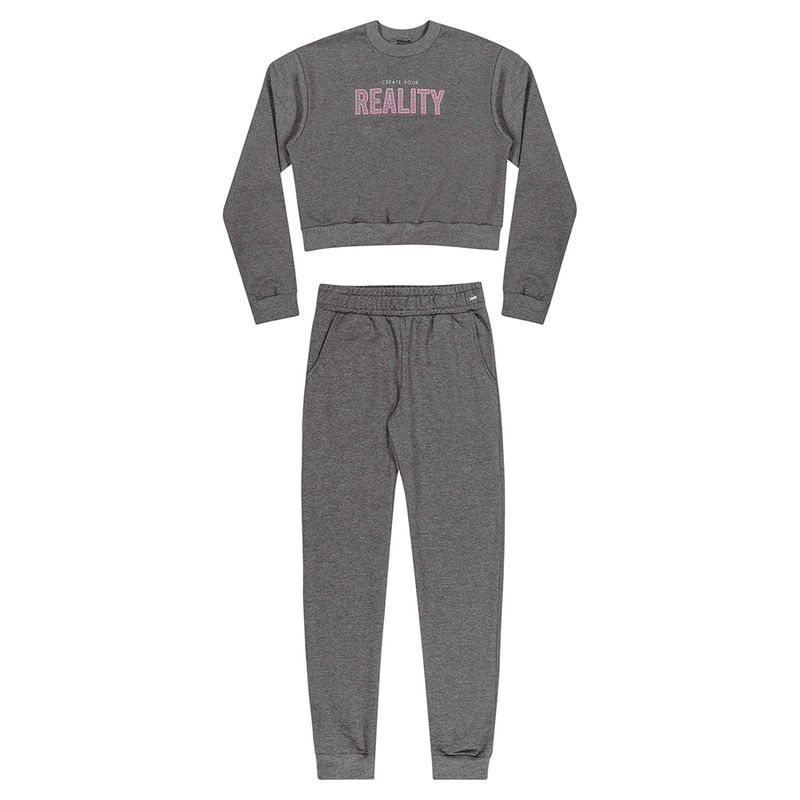 Conjunto Blusão e Calça Feminina Juvenil Elian Beats em Moletom Felpado