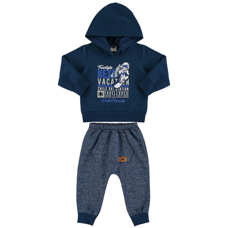 Conjunto Blusão e Calça Masculina Bebê Marlan em Moletom Felpado e Moletom Flamê 3 Cabos Felpado