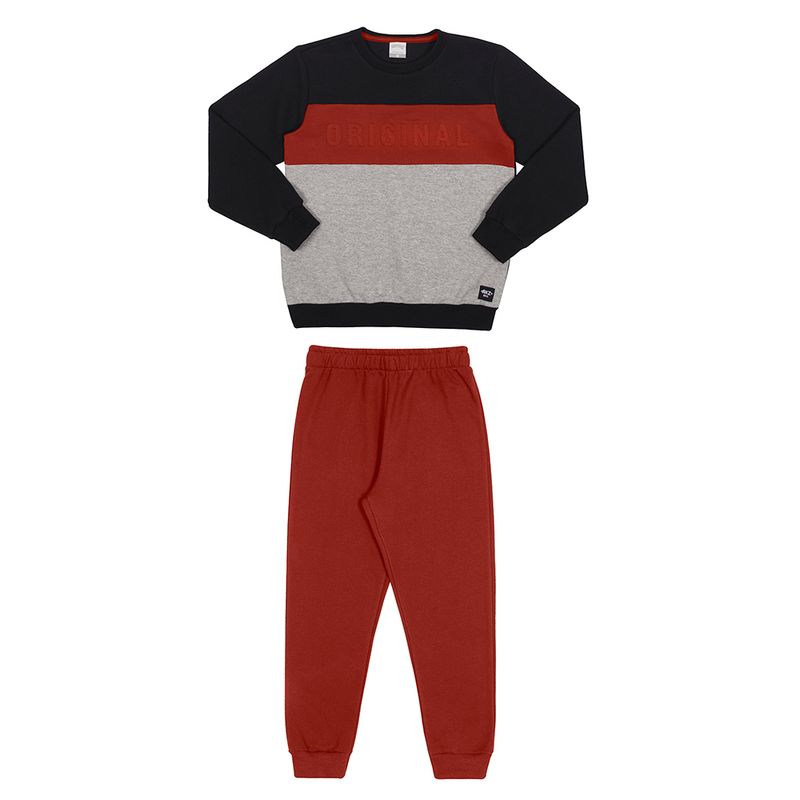 Conjunto Blusão e Calça em Moletom Ferrette e Moletom Felpado Masculina Juvenil Alakazoo 66219