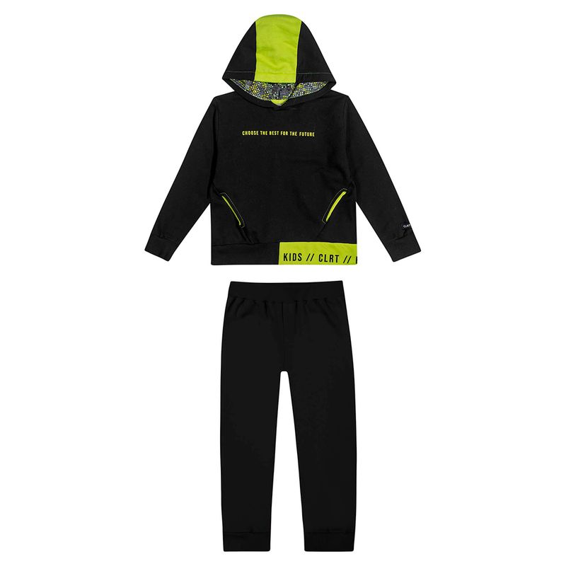 Conjunto Blusão em Moletom Felpado e Microfibra com Elastano e Calça em Moletom Felpado Masculino Juvenil Coloritta 74002