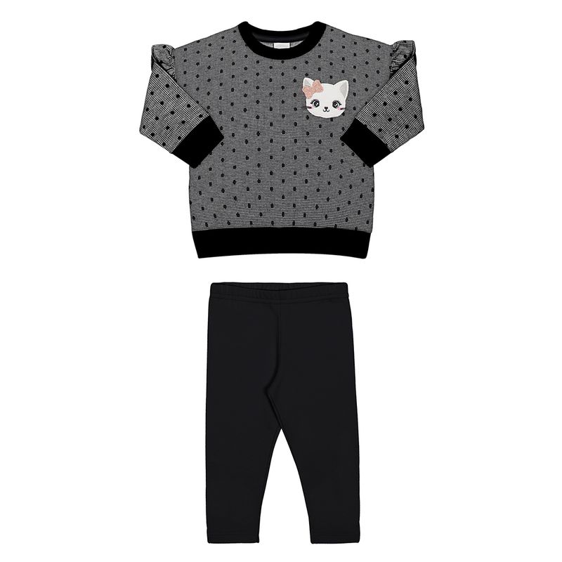 Conjunto Blusão e Calça em Malha Pied Poule e Molecotton Felpado Menina Bebê Alakazoo 66059