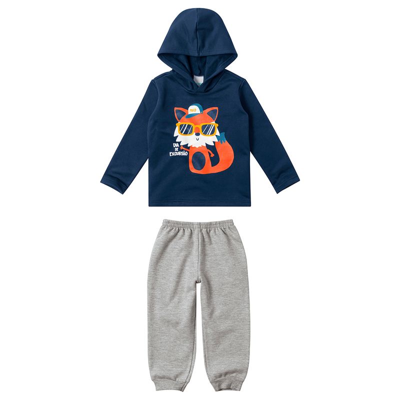 Conjunto Blusão e Calça Menino Bebê Malwee Kids em Moletom Flanelado