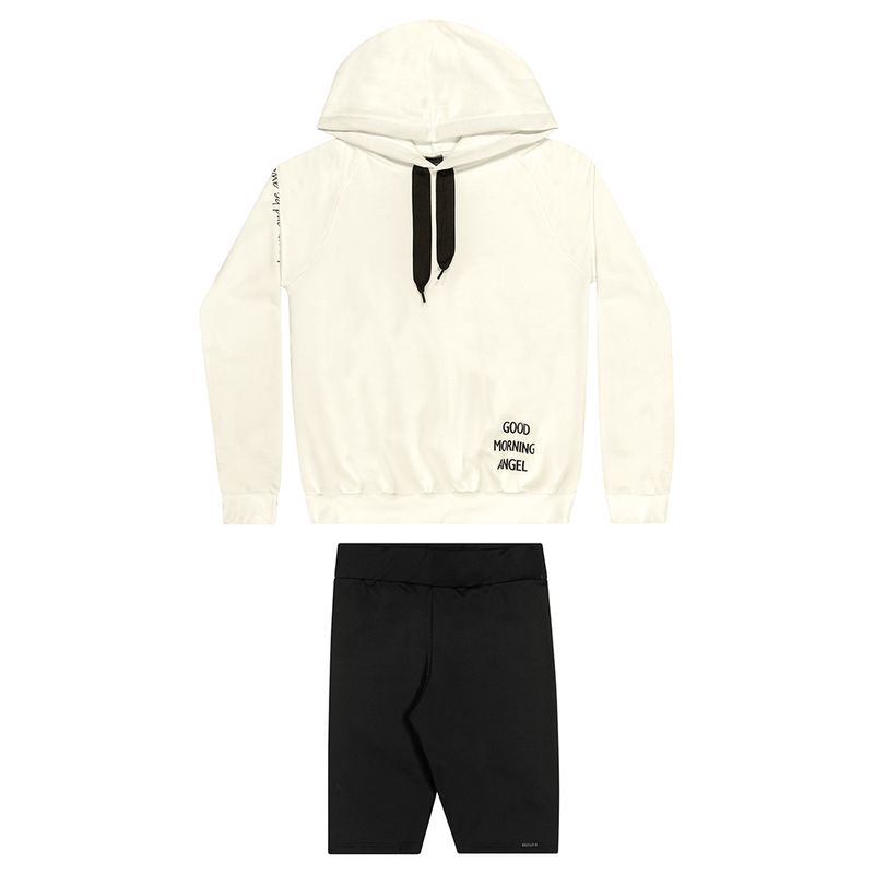 Conjunto Blusão e Ciclista Feminina Juvenil Beats em Moletom Felpado e Neoprene Flanelado