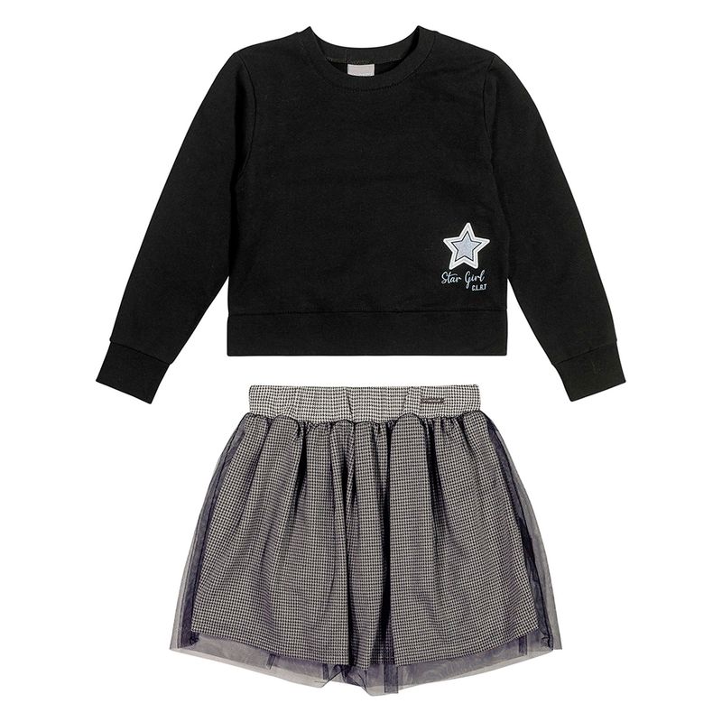 Conjunto Blusão em Molecotton Felpado e Saia em Malha Fio Tinto Acetinado e Tule Juvenil Coloritta 75025
