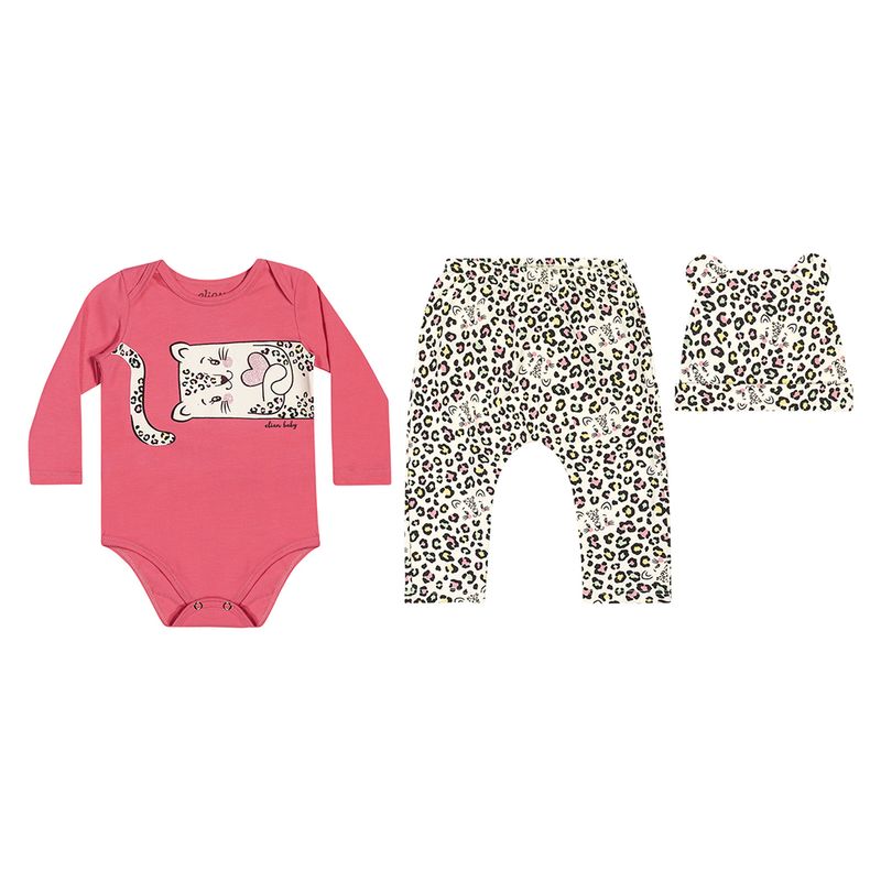 Conjunto Body, Touca e Calça de Menina Bebê Elian