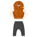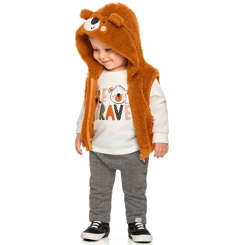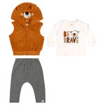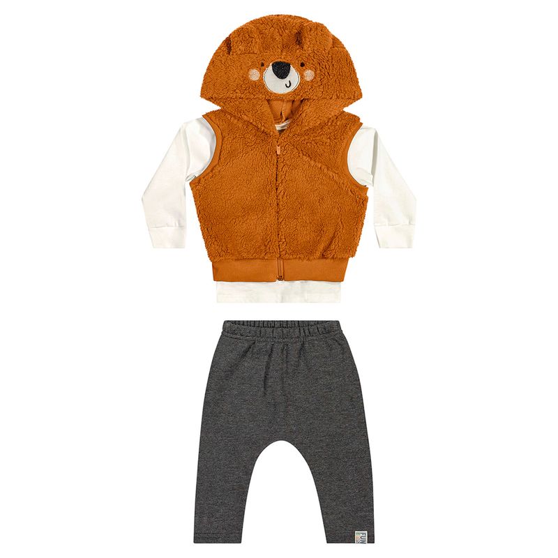 Conjunto Camiseta, Colete e Calça Menino Bebê Elian em Meia Malha Penteada, Pelo e Moletom Felpado