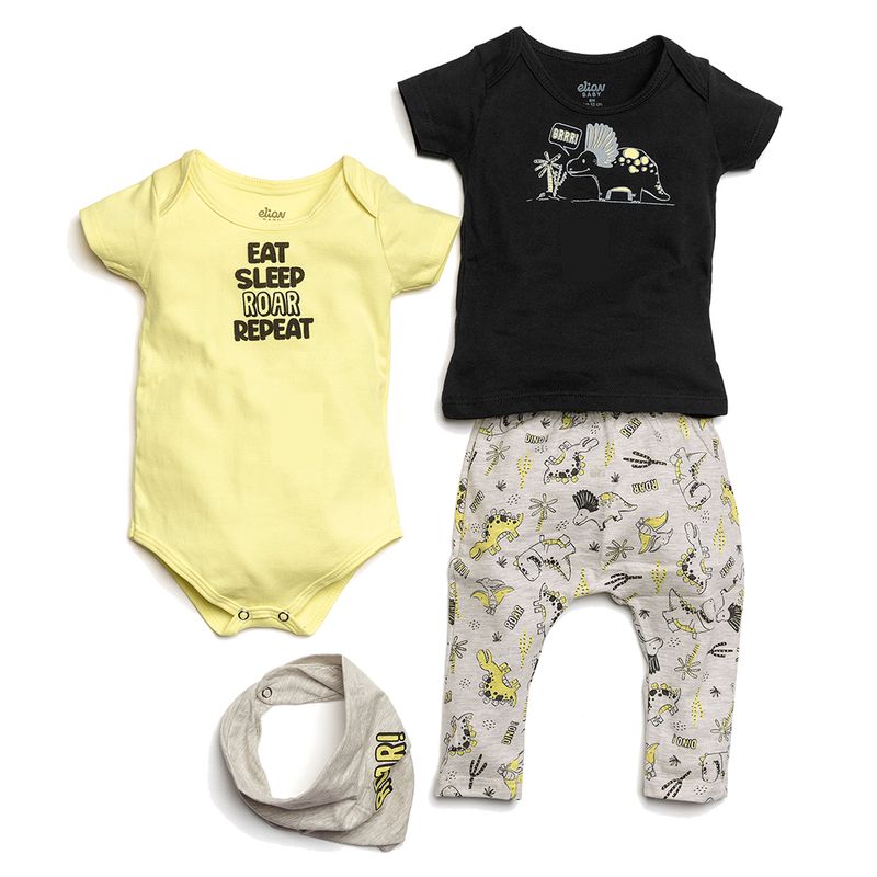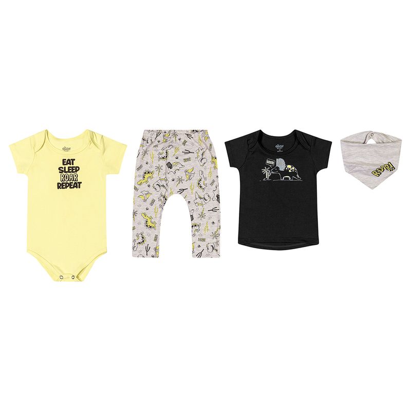 Conjunto Camiseta, Body, Babador e Calça Saruel de Menino Bebê Elian