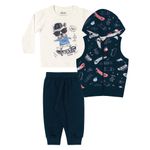 Conjunto Camiseta, Colete e Calça de Menino Bebê Elian em Meia Malha Penteada e Moletom Felpado