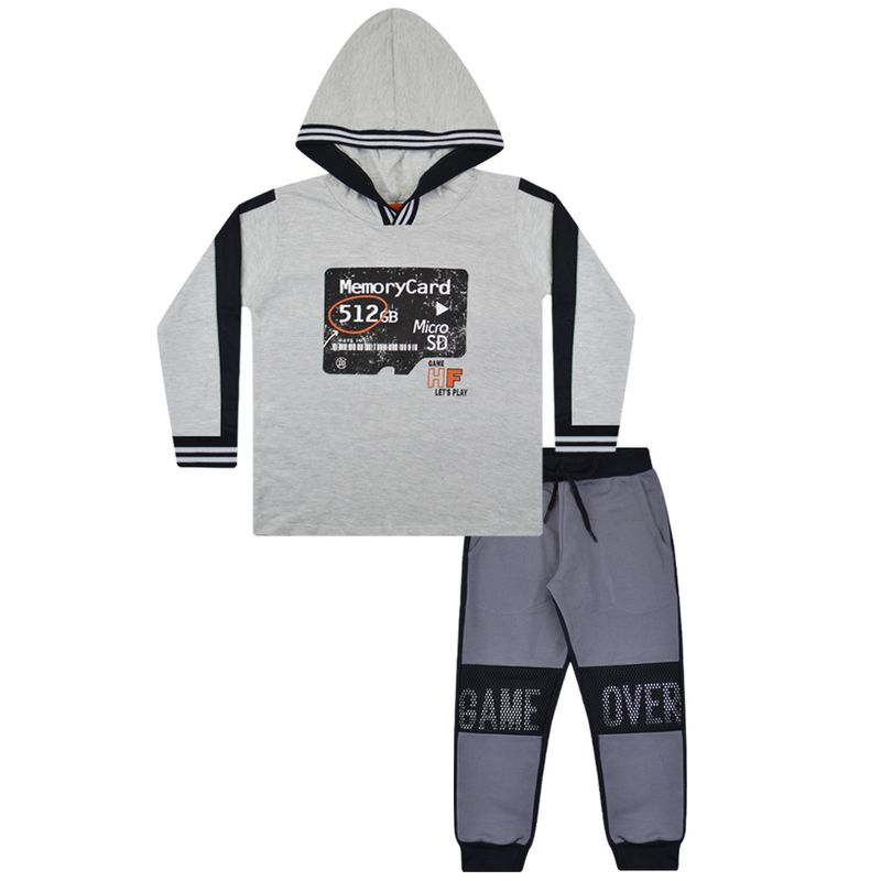 Conjunto Camiseta com Capuz e Calça de Menino Juvenil Have Fun em Meia Malha e Moletom