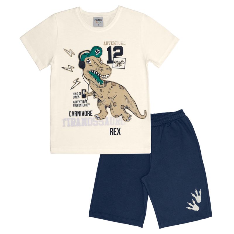 Conjunto Camiseta Dinossauro e Bermuda Masculino Primeiros Passos Rovitex em Meia Malha e Moletom