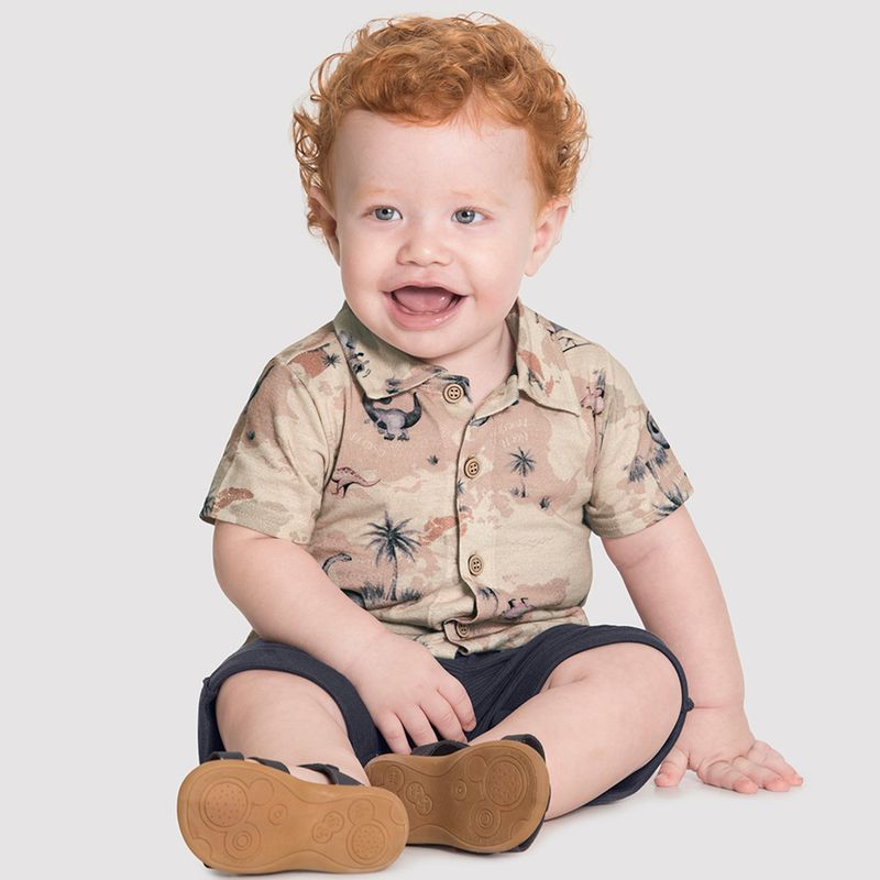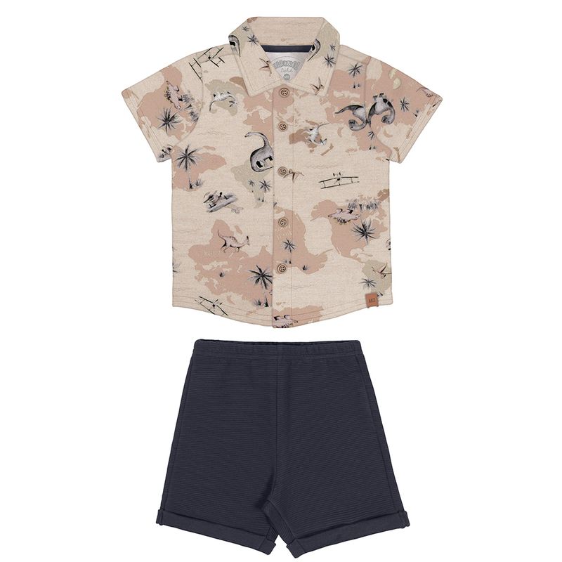 Conjunto Camiseta e Bermuda de Menino Bebê Alakazoo em Meia Malha Penteada e New Wave