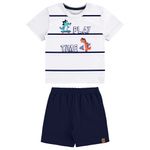 Conjunto Camiseta e Bermuda Dinossauro Bebê Alakazoo em Meia Malha Penteada e Moletom sem Felpa