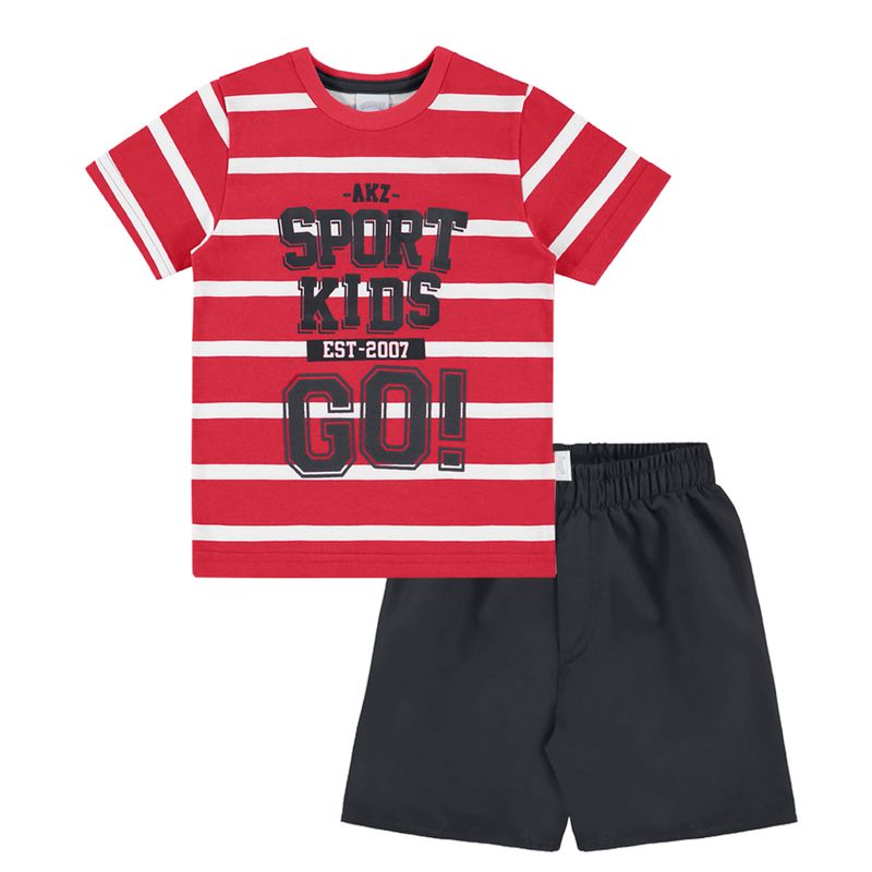Conjunto Camiseta e Bermuda Masculina Alakazoo em Meia Malha Penteada e Tecido Politel