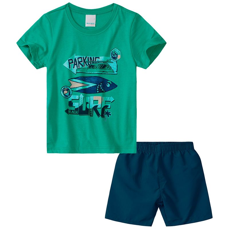 Conjunto Camiseta e Bermuda Masculina Malwee em Meia Malha / Microfibra Surf