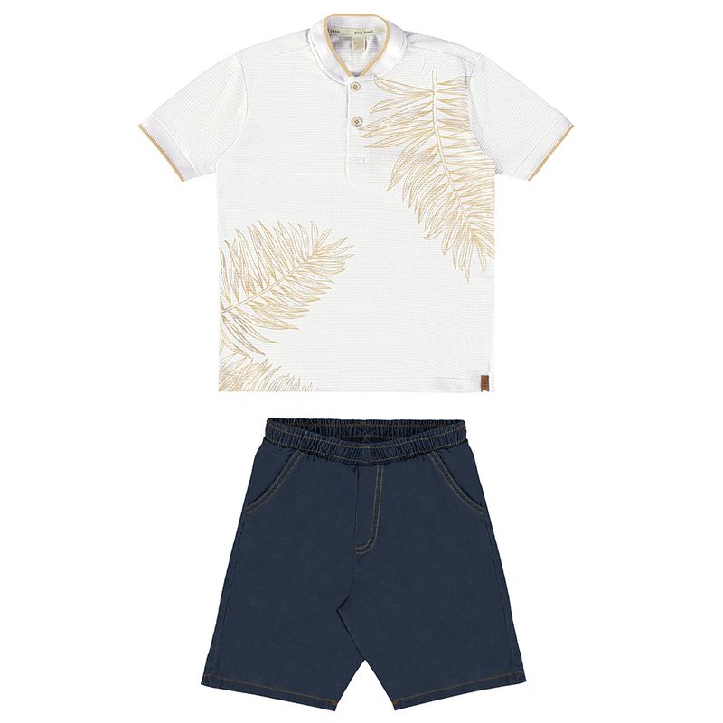 Conjunto Camiseta e Bermuda Masculina Primeiros Passos Ding Dang 3522 Material: MEIA MALHA MAQUINETADA E JEANS Manga: MANGA CURTA Abertura: FECHADA
