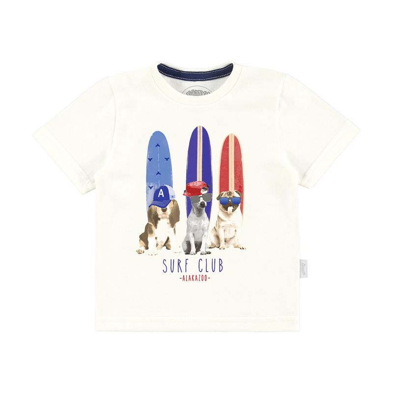 Conjunto Camiseta e Bermuda Masculino Alakazoo em Meia Malha Penteada e Tecido Politel. Surf Dogs