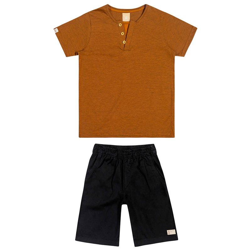 Conjunto Camiseta e Bermuda Masculino Juvenil Coloritta em Malha e Sarja