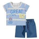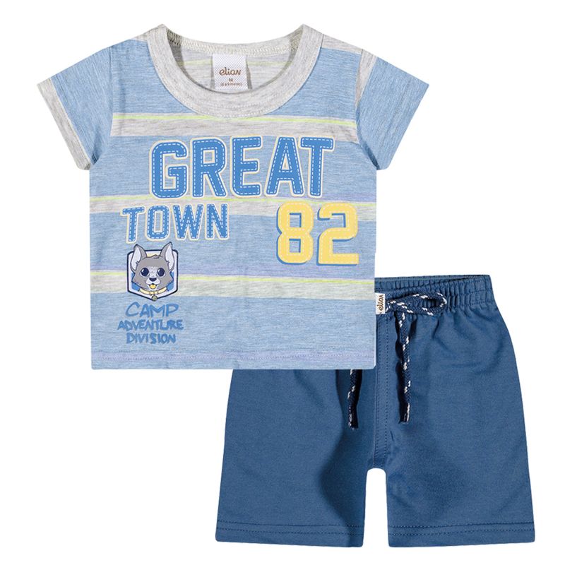 Conjunto Camiseta e Bermuda Masculino Primeiros Passos Elian | Camiseta em Meia Malha Penteada e Bermuda em Moletinho