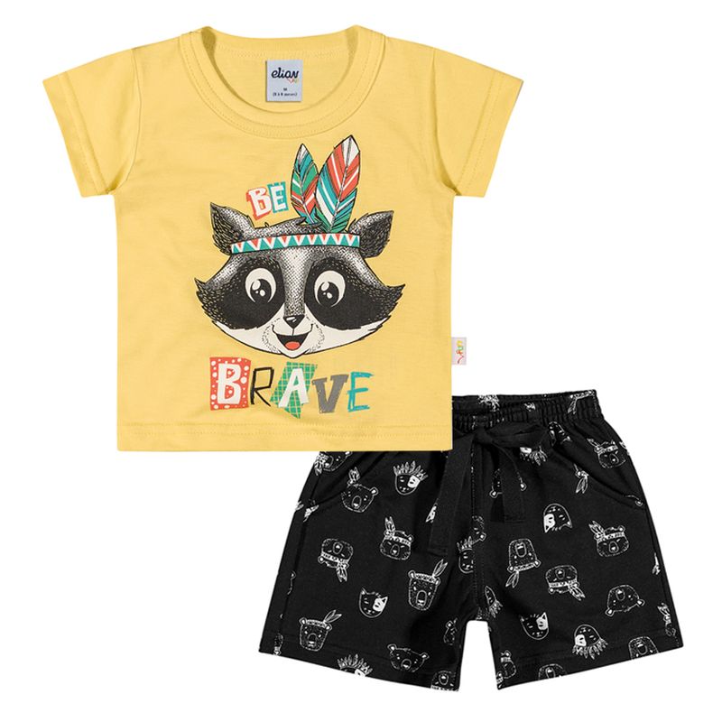Conjunto Camiseta e Bermuda Moletinho Elian Camiseta em Meia Malha Penteada "be Brave" Seja Corajoso