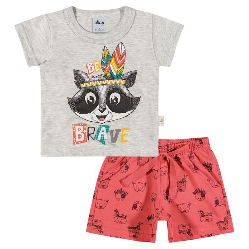 Conjunto Camiseta e Bermuda Moletinho Elian Camiseta em Meia Malha Penteada "be Brave" Seja Corajoso