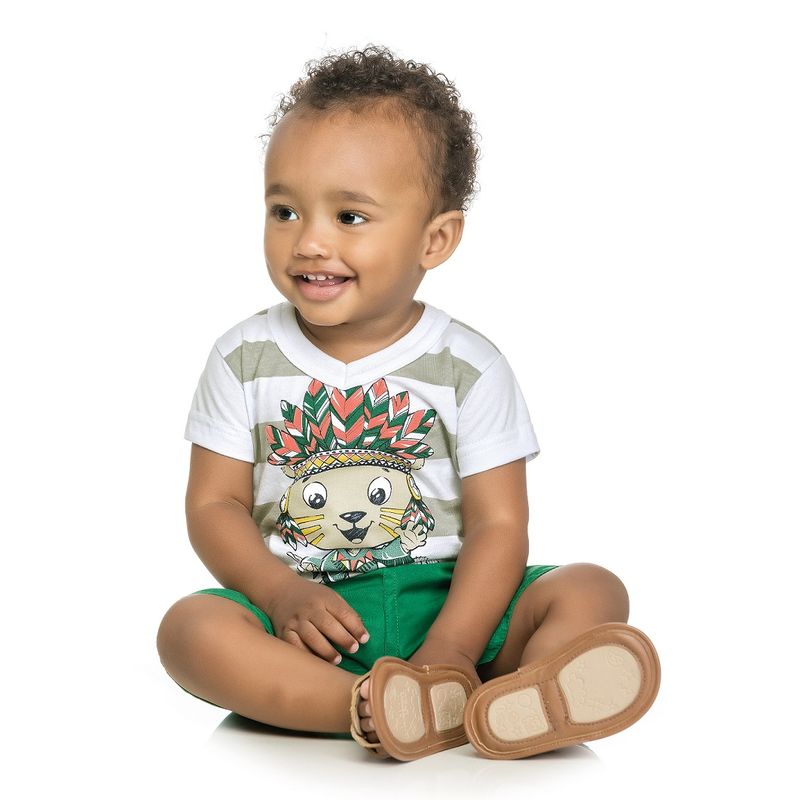 Conjunto Camiseta e Bermuda Tactel Elian | Camiseta em Meia Malha e Bermuda Tactel | Hello - Olá