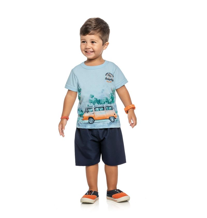 Conjunto Camiseta e Bermuda Elian | Camiseta em Meia Malha Penteada e Bermuda em Tactel