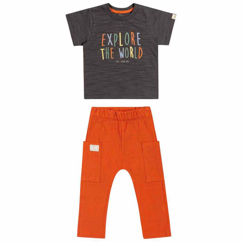 Conjunto Camiseta e Calça de Menino Bebê Coloritta em Malha Flamê e Malha Texturizada