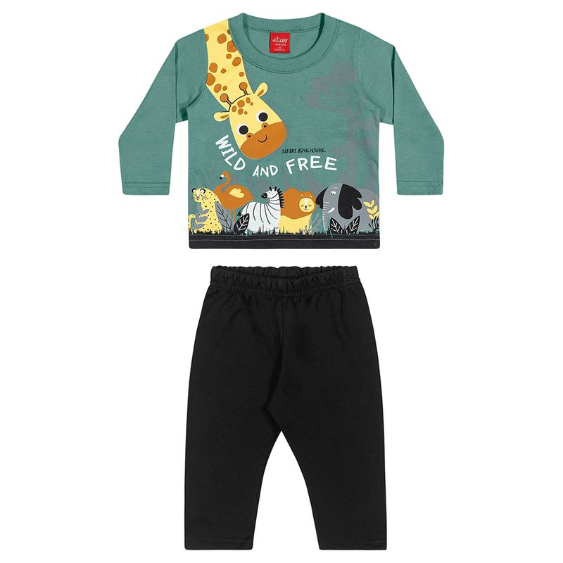 Conjunto Camiseta e Calça de Menino Bebê Elian em Meia Malha Penteada e Moletom sem Felpa