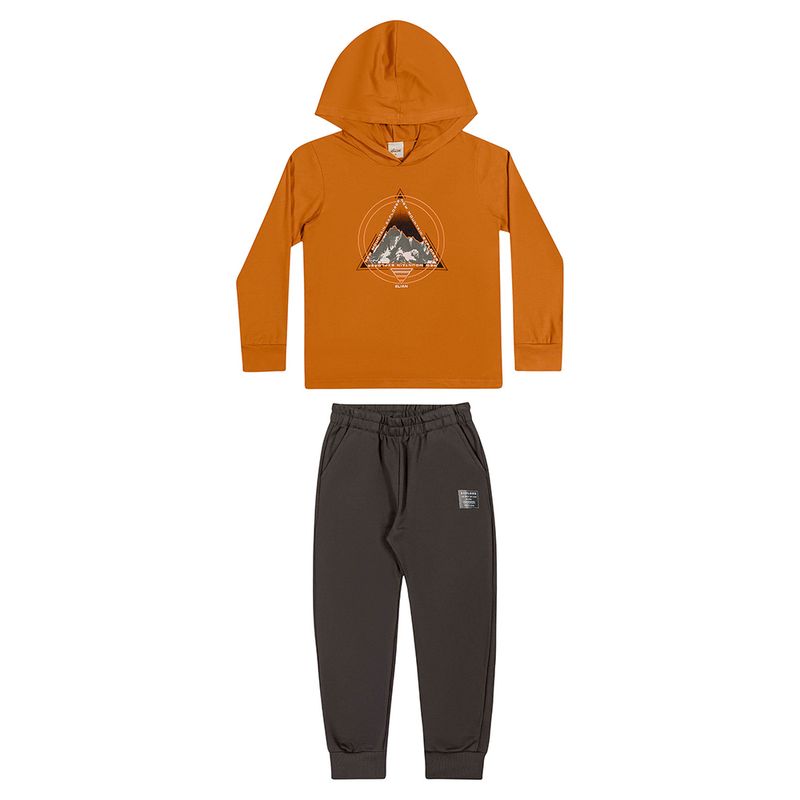 Conjunto Camiseta e Calça Masculino Juvenil Elian em Meia Malha Penteada e Moletom sem Felpa