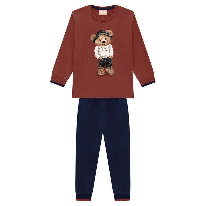 Conjunto Camiseta em Meia Malha e Calça em Moletom sem Felpa Menino Bebê Milon 14672