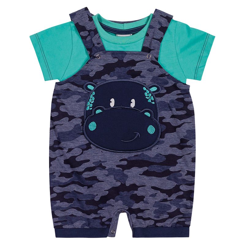 Conjunto Camiseta e Jardineira Hipopótamo Menino Bebê Angerô 28393