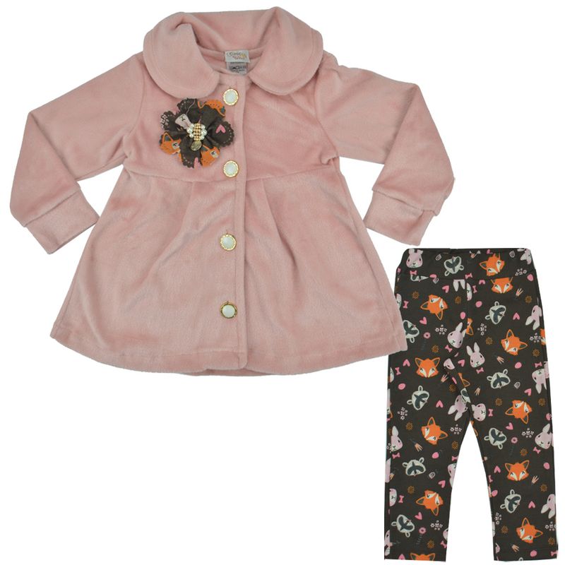 Conjunto Casaco e Calça Juvenil Carol e Dani - Calça Estampada Bichinhos e Casaco em Plush