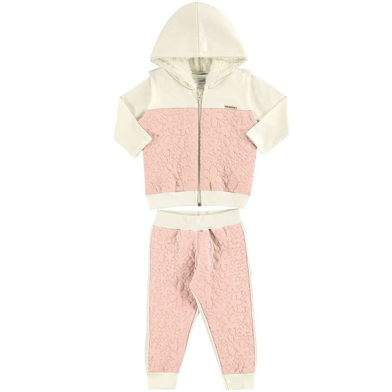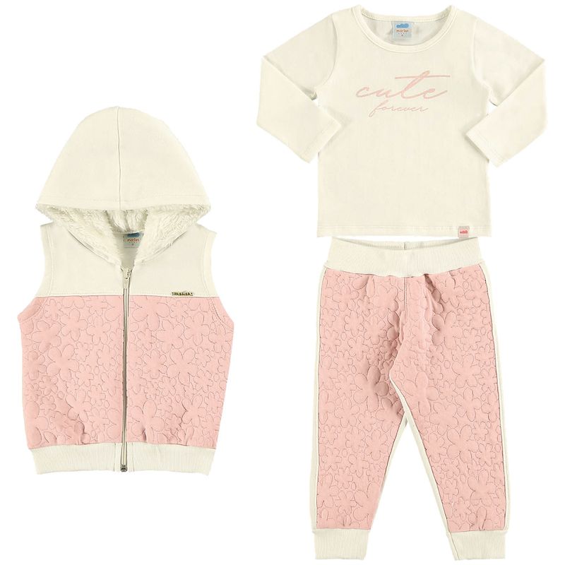 Conjunto Colete, Blusa e Calça Feminino Bebê Marlan em Moletom Felpado, Matelasse e Cotton Penteado