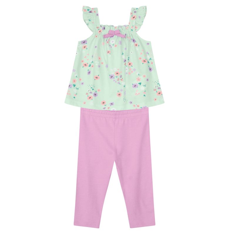 Conjunto Femiino Bebê Brandili 26071 Material: MEIA MALHA E COTTON Manga: REGATA Barra: BARRA TRADICIONAL Abertura: FECHADA Efeito Brilho
