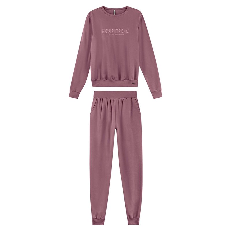 Conjunto Feminino Adulto Marialícia 183405 Material: MOLETOM FLANELADO Manga: MANGA LONGA COM PUNHO Barra: BARRA COM PUNHO Abertura: FECHADA Bordado c/ Relevo