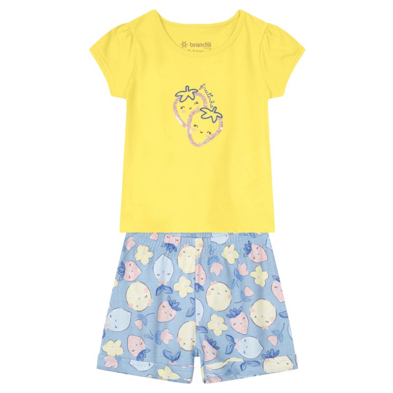 Conjunto Feminino Bebê Brandili 26077 Material: MEIA MALHA E MEIA MALHA WAFFLE Manga: MANGA CURTA Abertura: FECHADA Bordado com Paetê
