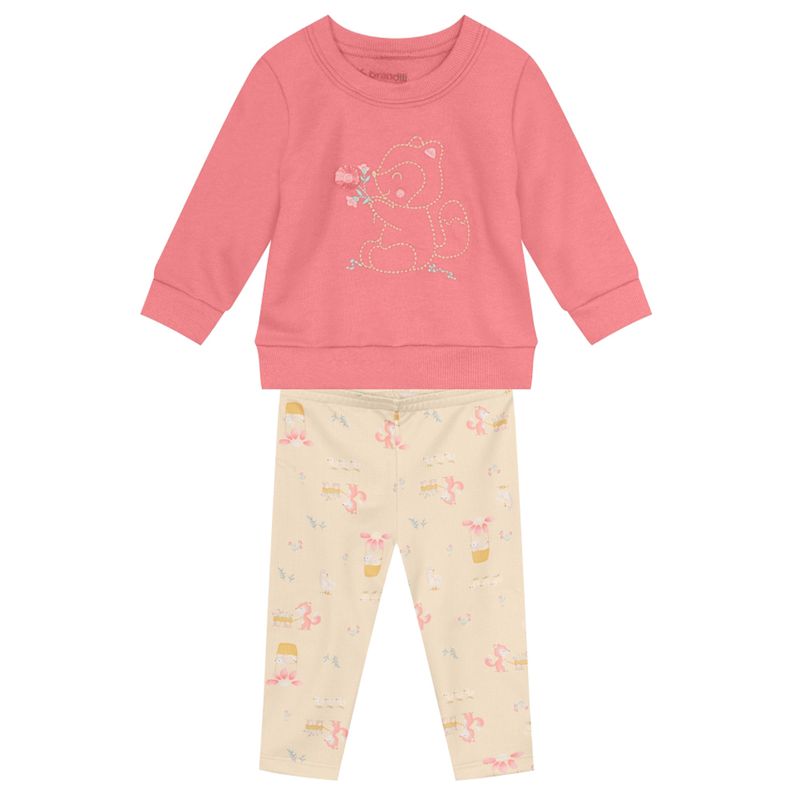 Conjunto Feminino Bebê Brandili 55760 Material: MOLETOM E TÉRMICA PESADA Manga: MANGA LONGA COM PUNHO Barra: BARRA TRADICIONAL Abertura: FECHADA Bordado Decorativo