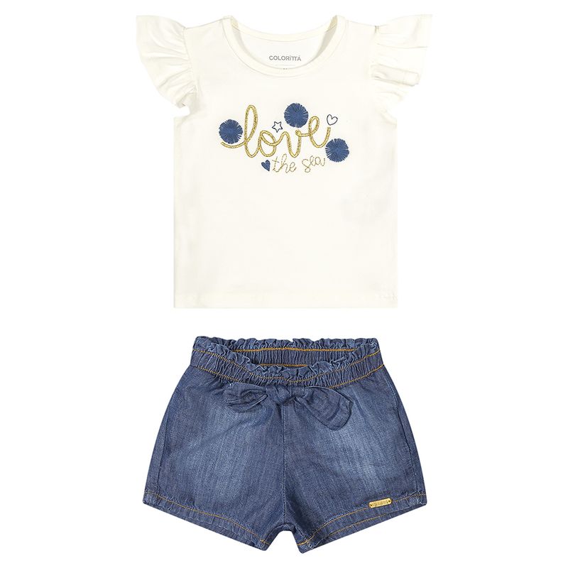 Conjunto Feminino Bebê Coloritta 71056 Material: COTTON LEVE/ JEANS Manga: MANGA CURTA Abertura: FECHADA Bordado com Fio Lurex