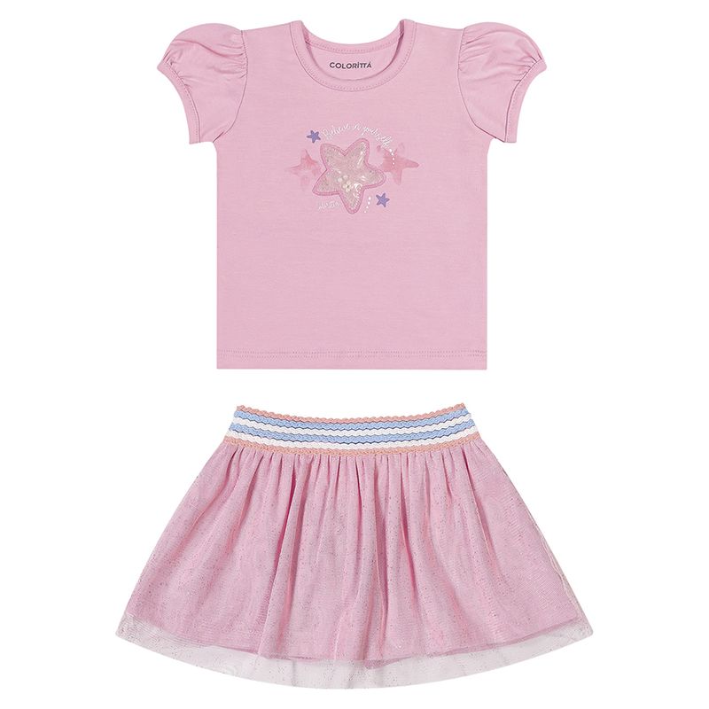 Conjunto Feminino Bebê Coloritta 71057 Material: COTTON LEVE/ TULE Manga: MANGA CURTA Abertura: FECHADA Bordado com Aplique em Tule e Perólas