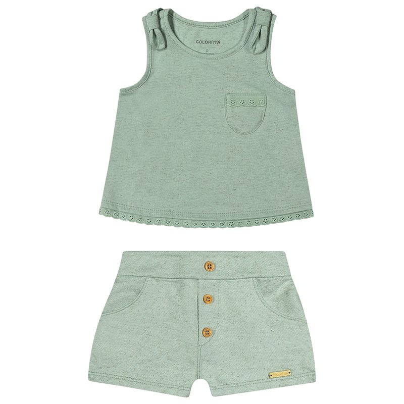 Conjunto Feminino Bebê Coloritta 71126 Material: MALHA ECO LINHO E MOLETOM ECO LINHO Manga: REGATA Abertura: FECHADA Aplique Renda