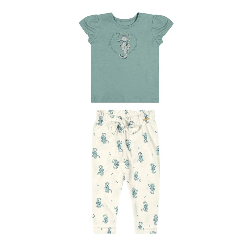 Conjunto Feminino Bebê Coloritta 71183 Material: COTTON LEVE E MEIA MALHA TRABALHADA ESTAMPADA Manga: MANGA CURTA Barra: BARRA COM PUNHO Abertura: FECHADA Estampa com Imita Foil