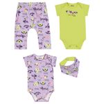 Conjunto Feminino Bebê Elian 211383 Material: COTTON Manga: MANGA CURTA Barra: BARRA TRADICIONAL Abertura: BOTAO Babador Dupla Face