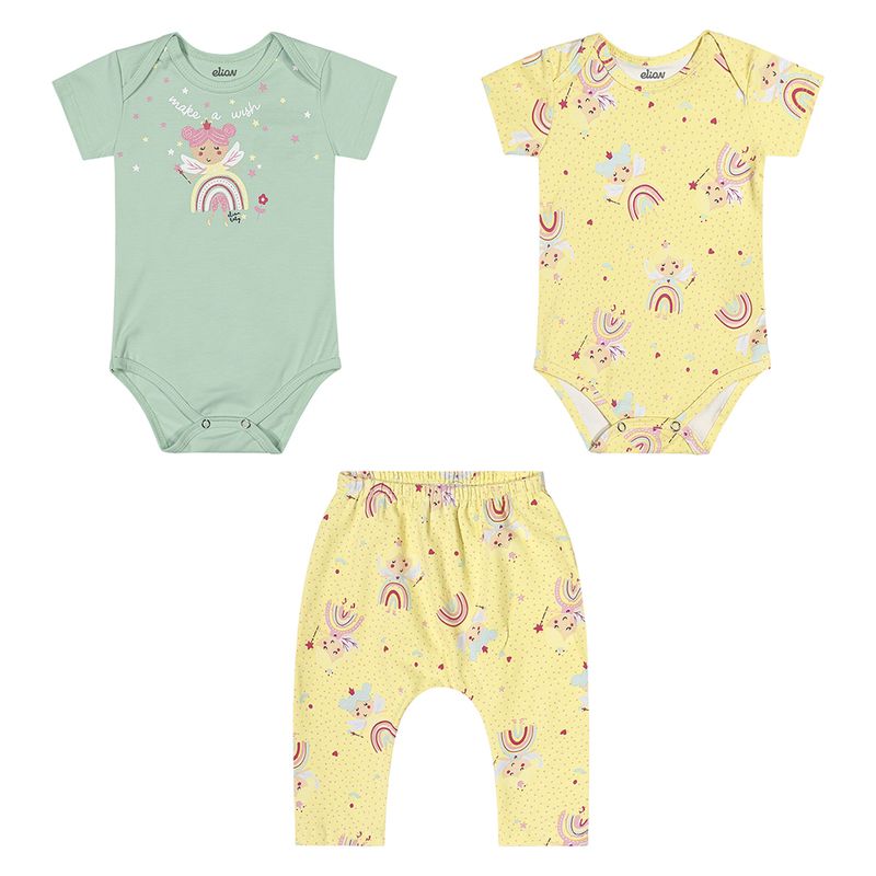 Conjunto Feminino Bebê Elian 211439 Material: COTTON Manga: MANGA CURTA Barra: BARRA TRADICIONAL Abertura: BOTAO Estampa c/ Glitter