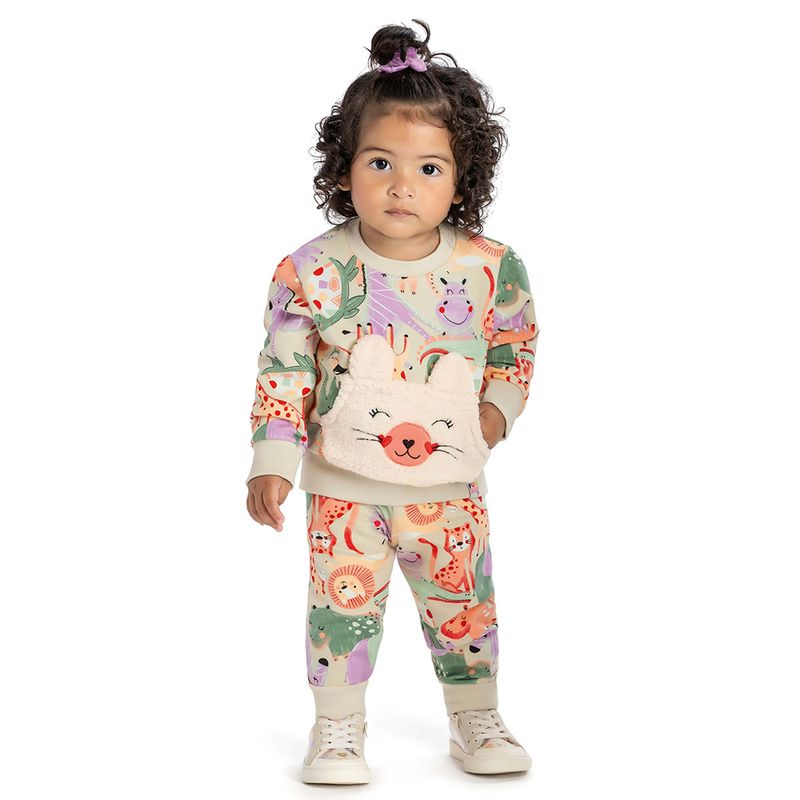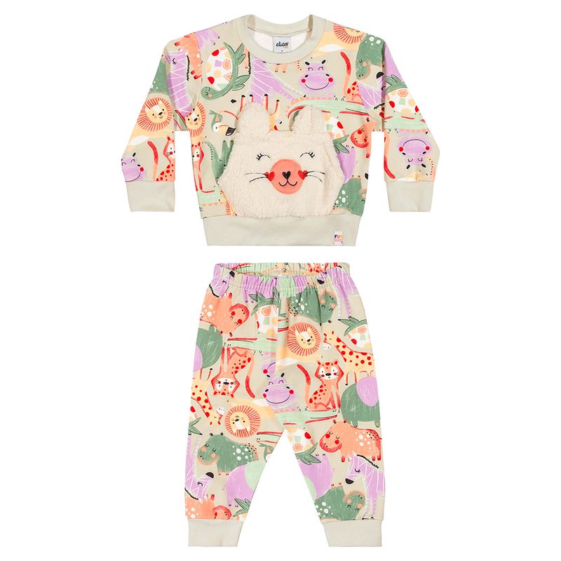 Conjunto Feminino Bebê Elian 211459 Material: MOLECOTTON Manga: MANGA LONGA COM PUNHO Barra: BARRA COM PUNHO Abertura: FECHADA Bordado/ Aplique Pelo