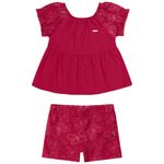 Conjunto Feminino Bebê Elian 211514 Material: MEIA MALHA E MEIA MALHA DEVORÊ Manga: MANGA CURTA Abertura: FECHADA