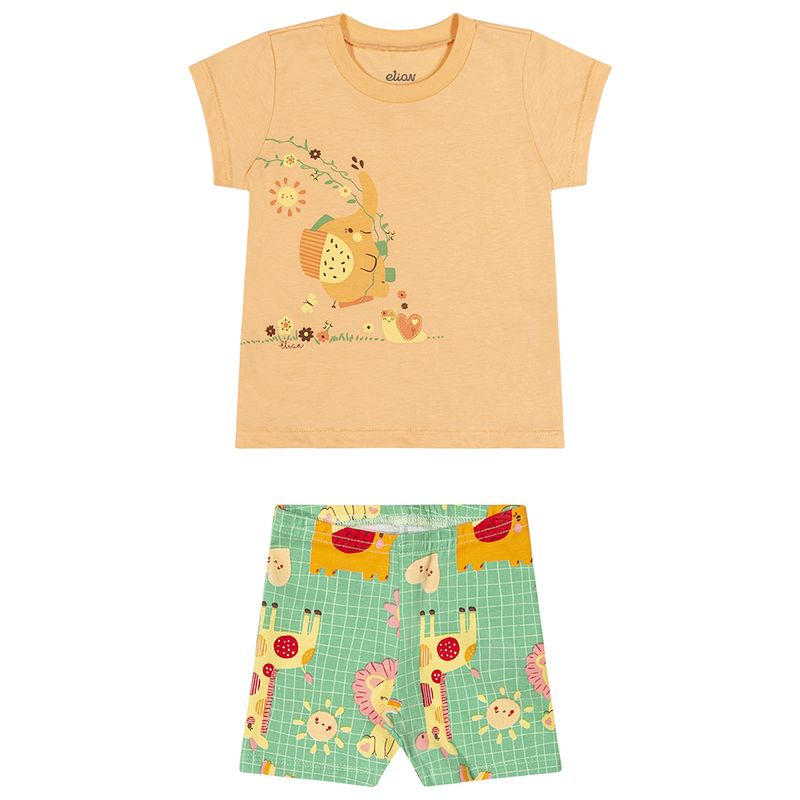 Conjunto Feminino Bebê Elian 211518 Material: MEIA MALHA PENTEADA E COTTON LEVE Manga: MANGA CURTA Abertura: FECHADA