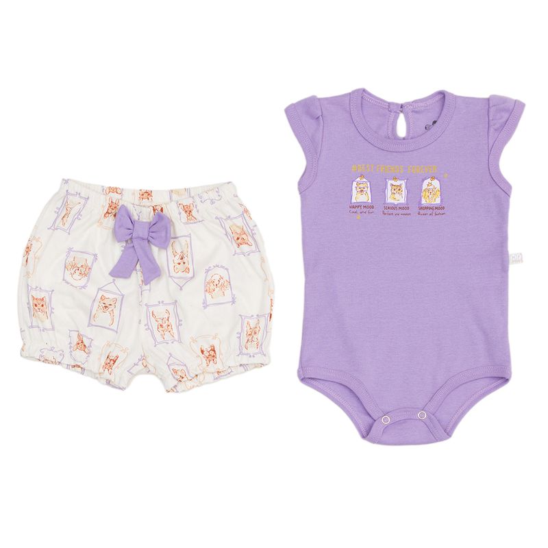 Conjunto Feminino Bebê Have Fun 28185 Material: RIBANA/ MALHA Manga: MANGA CURTA Abertura: FECHADA