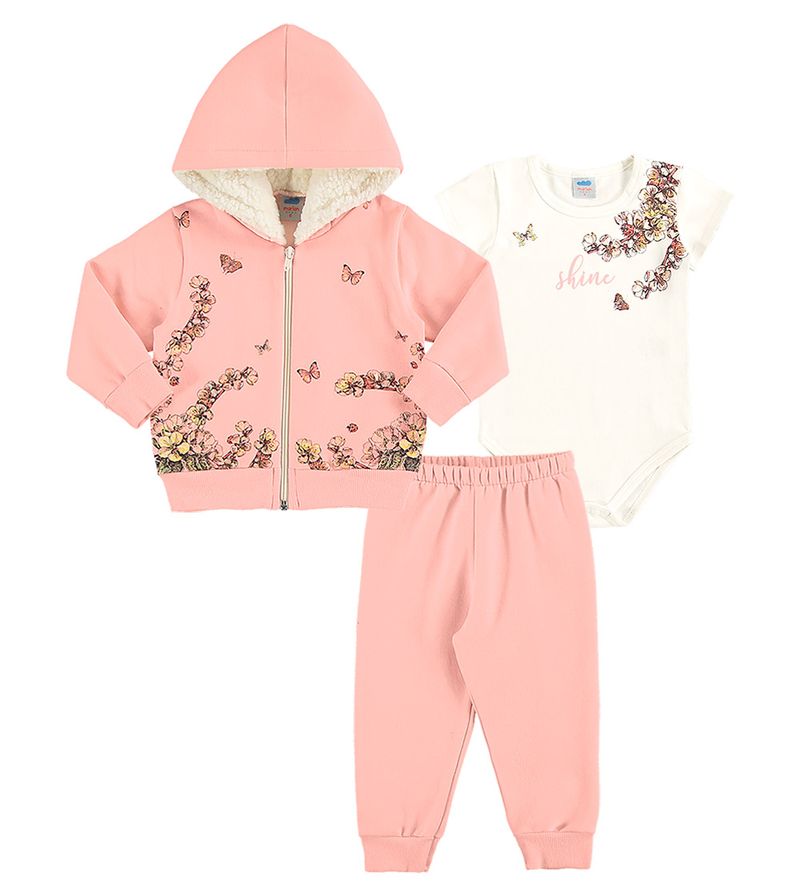 Conjunto Feminino Bebê Jaqueta, Body e Calça Marlan - Jaqueta e Calça em Moletom Felpado e Body em C