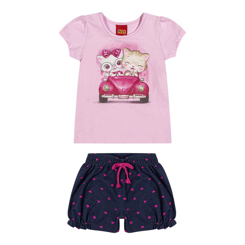 Conjunto Feminino Bebê Kyly 1000521 Material: MEIA MALHA E COTTON Manga: MANGA CURTA Abertura: FECHADA